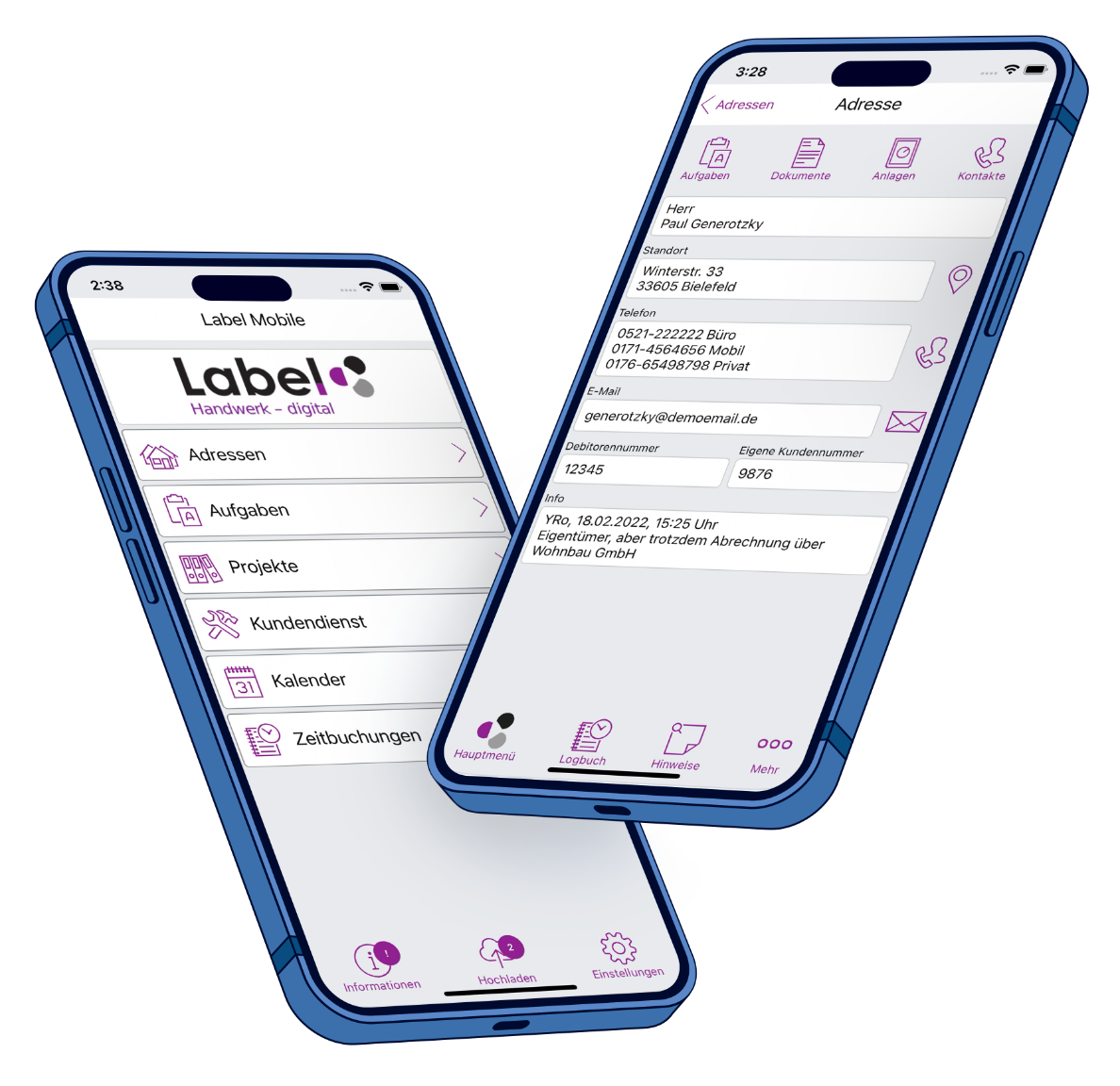 Label Mobile ermöglicht Ihnen effizientes und flexibles Arbeiten auch unterwegs. Mit unserer mobilen App haben Sie jederzeit und überall Zugriff auf Ihre Label Software-Daten: sicher und unkompliziert direkt von Ihrem Smartphone oder Tablet.